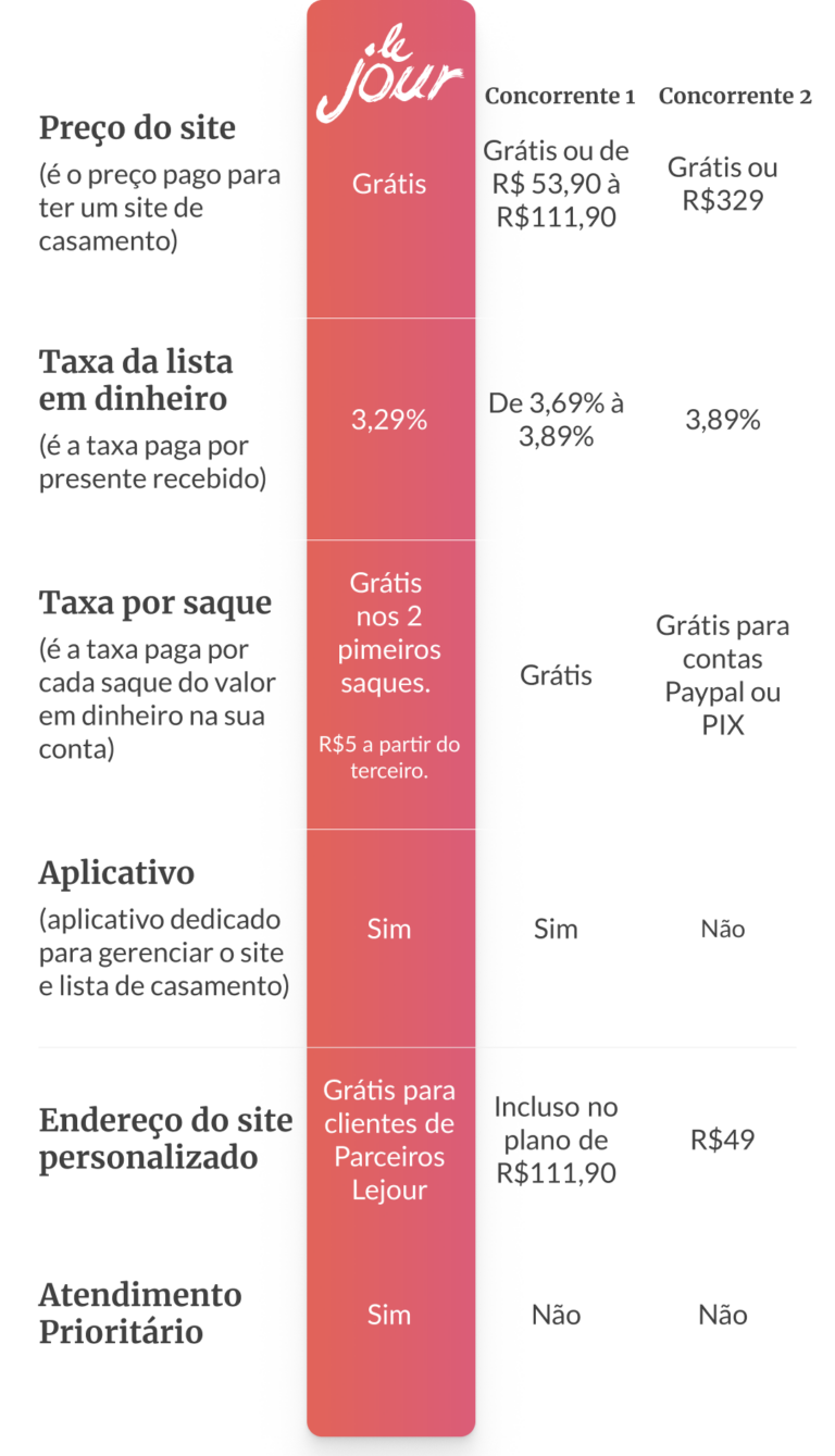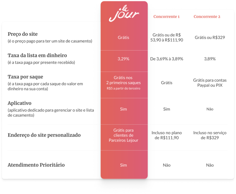 A Noh, em parceria com a Lejour te presenteia com um site de casamento lindo e taxa reduzida na sua lista de casamento!